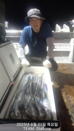 ♣️8월 29일 입항 – 스텔론 갈치조황♣️스텔론은 오늘도 믿고 타는 배, 매일매일 쿨러조황!은빛 갈치로 가득 채운 쿨러를 보니, “아… 오늘도 역시 스텔론이다!” 라는 말이 절로 나옵니다.다만, 오늘은 한 가지 솔직히 말씀드리자면 편차가 조금 있었습니다.앞쪽은 폭발적으로, 중간은 꾸준히, 뒤쪽은 조금 더 기다림이 필요했지만결국 모두 웃으며 내릴 수 있는 조황으로 마무리!바다는 언제나 변덕이 있지만, 스텔론은 늘 최선을 다합니다.오늘도 느꼈습니다.배를 잘 타야 쿨러가 미소 짓는다.그 배가 바로, 스텔론입니다.????️????️9월 출조 일정 안내????️????️9월 1일 (월) ➡️ 14자리 여유9월 2일 (화) ➡️4자리 여유9월 3일 (수) ➡️7자리 여유9월 4일 (목) ➡️ 4자리 여유➡️➡️ 예약문의 : 010-2300-4931네이버 밴드 주소: https://band.us/n/a9a6bcJcV090G ==== 여수 스텔론피싱 예약안내 ====예약문의 : 010-6534-6812오시는길 : 전남 여수시 돌산읍 진두해안길 68홈페이지 : http://stallone.sunsang24.com/
